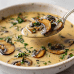 A rich and velvety vegan cream of mushroom soup made with plant-based ingredients like cremini mushrooms, garlic, and cashew or coconut cream. Perfect for cozy meals and easy to customize.