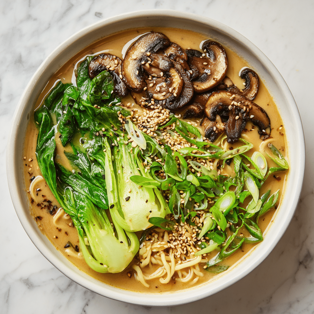 You may be surprised that this ramen gets its creamy, rich consistency without a drop of dairy. The secret is in the tahini—a paste made from ground sesame seeds—which creates an almost velvety mouthfeel when whisked into hot broth. When combined with a spoonful of white miso, it adds a layered umami flavor that simmers into a broth so satisfying, you won’t believe it’s vegan. The richness of sesame, the depth of miso, and the zing of fresh ginger and garlic all play key roles in crafting a balanced bowl.